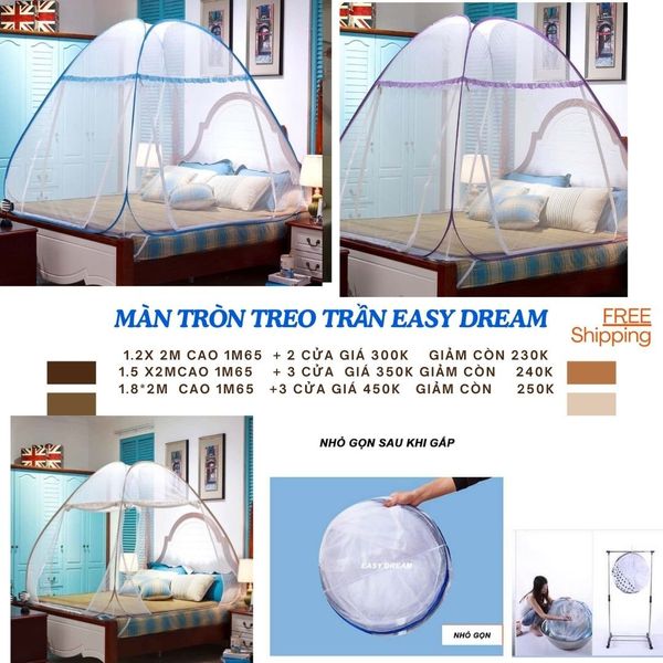 Là loại màn chống muỗi có khung xếp bằng thép dẻo, được thiết kế theo dạng lều mái vòm. Khi sử dụng, chỉ cần bung nhẹ để màn tự bật mở. Khi không dùng, bạn có thể gấp gọn lại chỉ còn bằng một chiếc gối ôm, vô cùng tiết kiệm diện tích.