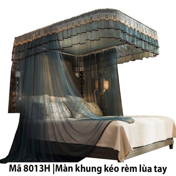 Phù hợp phòng ngủ nhỏ, giường kê sát tường. Khung được lắp ở đầu giường, tạo độ cao vừa phải để treo mùng 2–4 cửa.