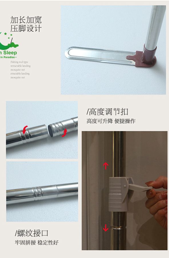 Lắp đặt: Được lắp tại giường, với 2 chân vịt thiết kế kê vào chân giường, giúp cố định màn mà không cần khoan đục.