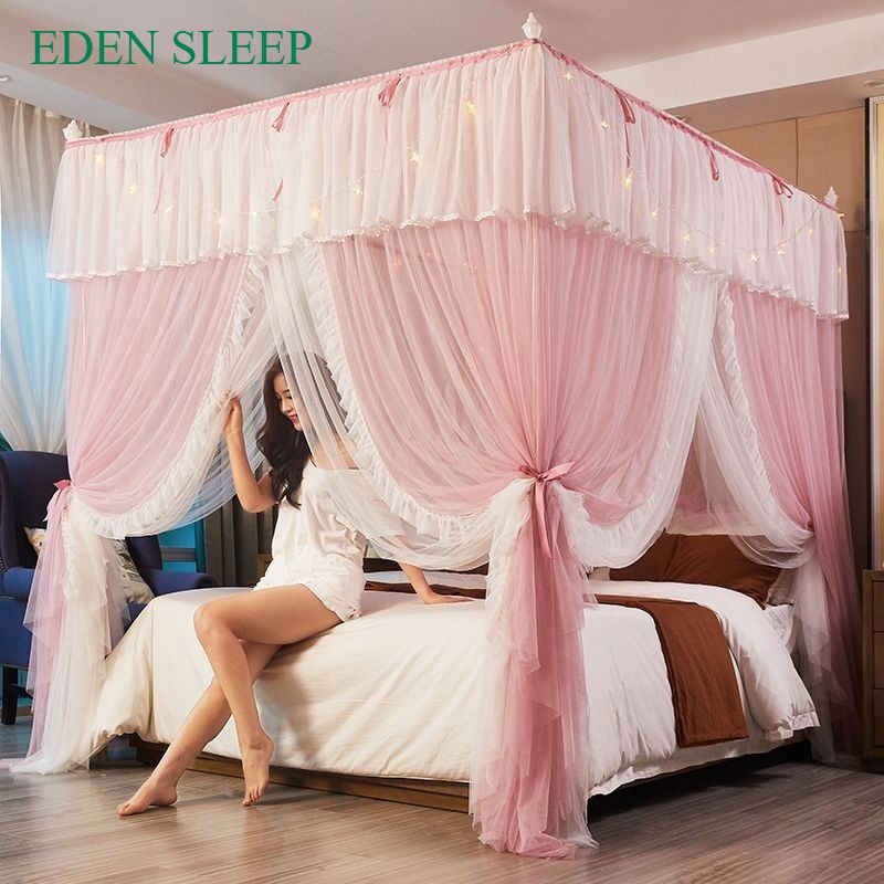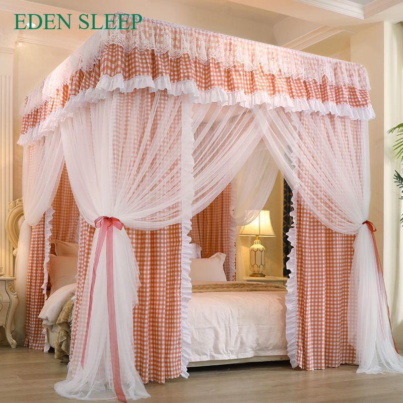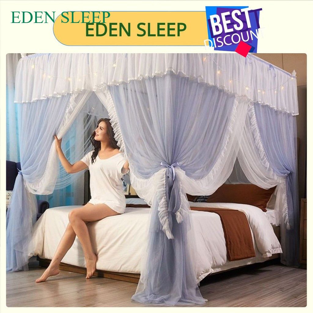 EDEN SLEEP Mùng khung chống muỗi,màn khung vuông,phòng ngủ cao cấp 1,2m-1,8m-2m, rèm giường dày 3 cửa
