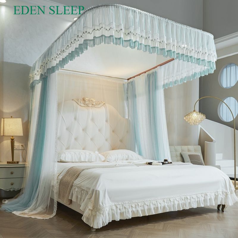 EDEN SLEEP HẠNG 2 Màn chống muỗi dẫn hướng hình chữ U kiểu công chúa mới, giá đỡ đường ray ba cửa ba cửa được mã hóa