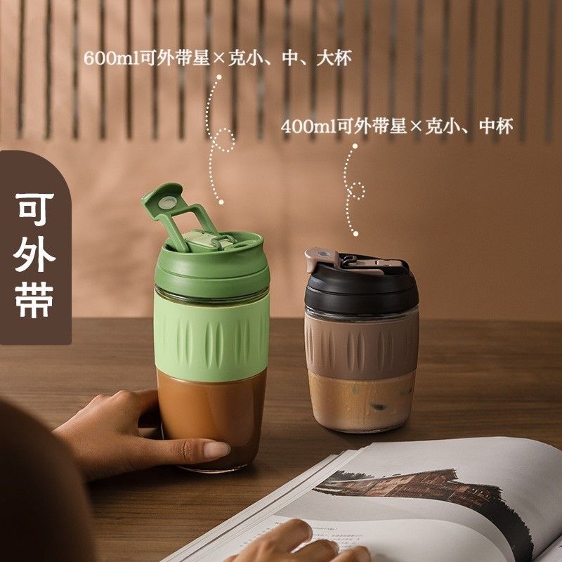 JEKO&JEKO Cốc Cà Phê Thủy Tinh Cốc Nước Cốc Ống Hút Cầm Tay Cho Nữ Cốc Cầm Tay Người Lớn Giá Trị Cao 400mLXanh Bơ