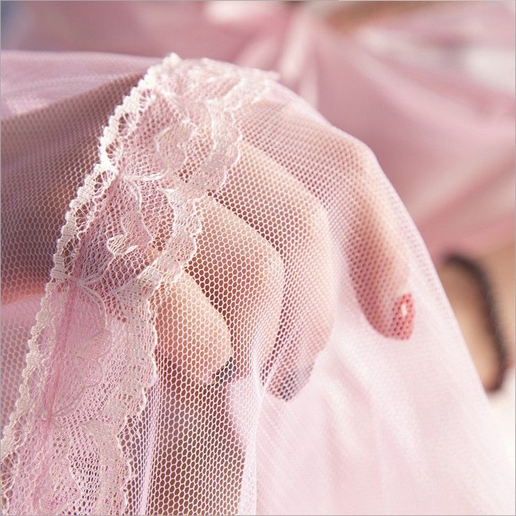 Bộ bao gồm : bộ khung vương miện + lớp vải ren + vải màn + bộ đèn led và khung nâng màn phía chân giường