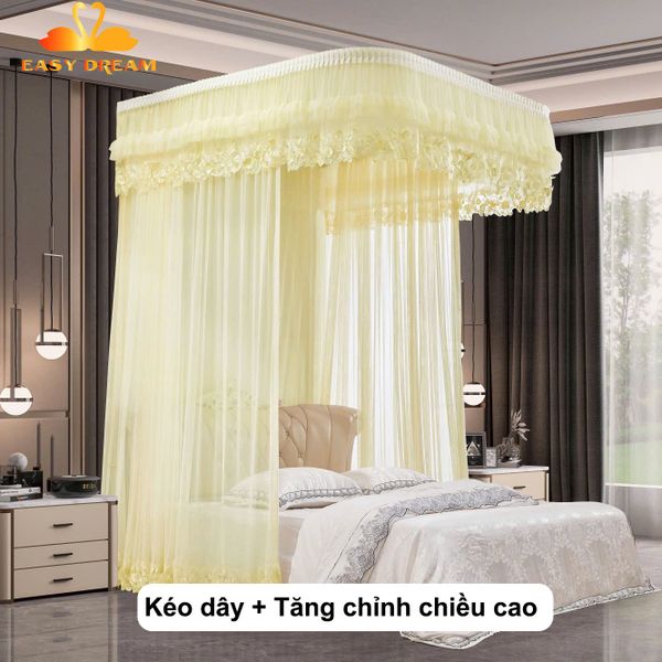 Mùng khung không khoan tường cao cấp EASY DREAM -Màn khung ròng rọc kéo dây tăng chỉnh được chiều cao