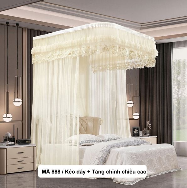 Mùng khung không khoan tường cao cấp  -Màn khung ròng rọc kéo dây tăng chỉnh được chiều cao