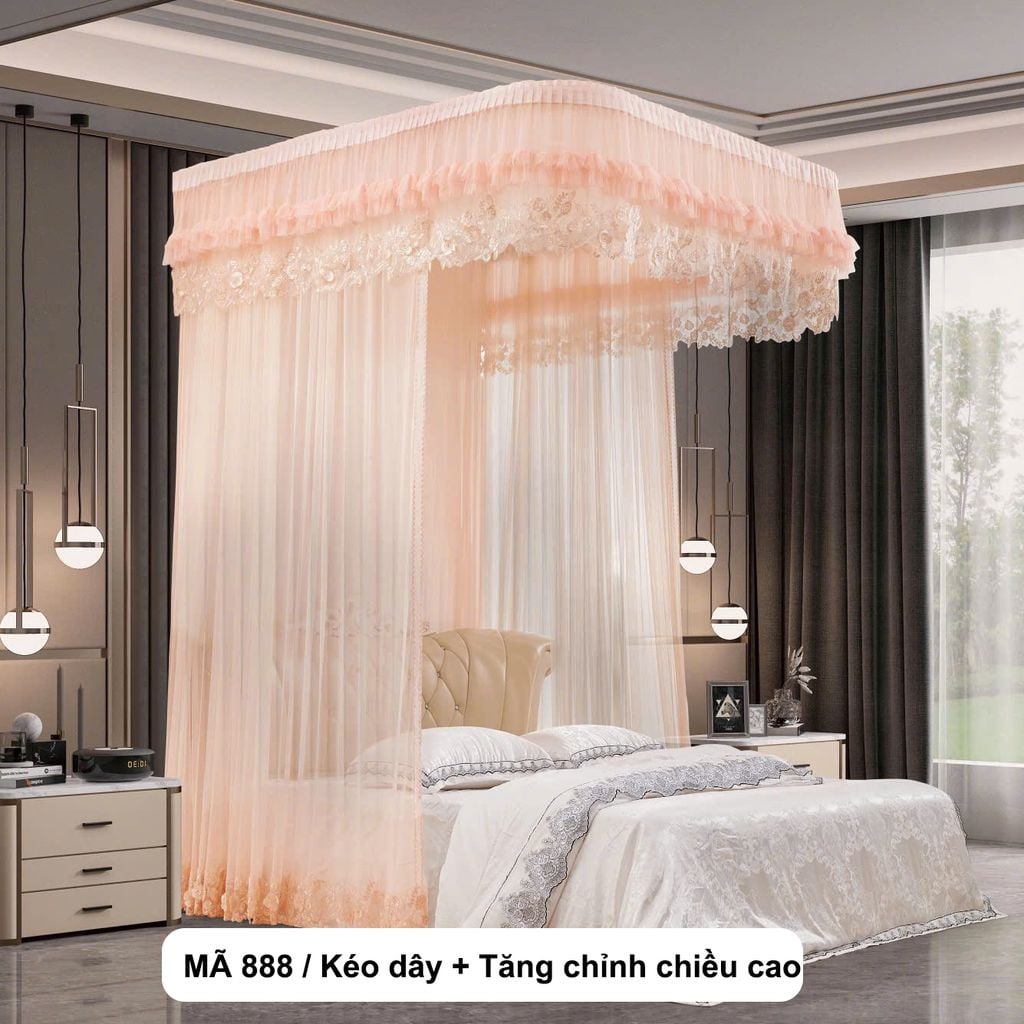 Sản phẩm này thường đi kèm khung chắc chắn (bằng sắt, inox hoặc hợp kim), giúp màn treo cố định, đồng thời có thể tăng giảm chiều cao linh hoạt phù hợp với giường ngủ hoặc nhu cầu sử dụng.