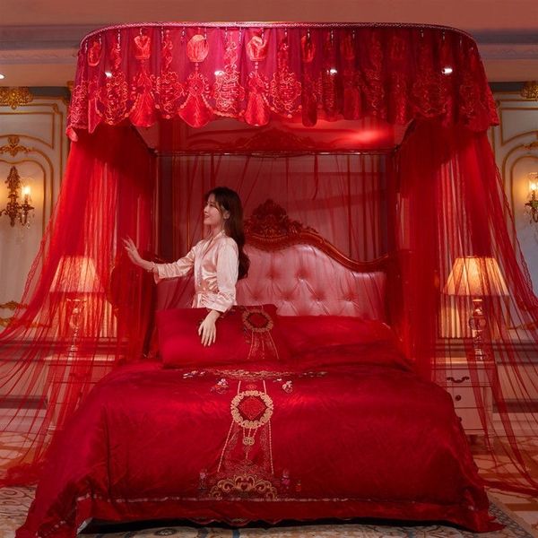 Màn khung cưới không chỉ là vật dụng che chắn, chống muỗi, mà còn là điểm nhấn quan trọng tạo không gian lãng mạn, ấm áp cho phòng tân hôn.