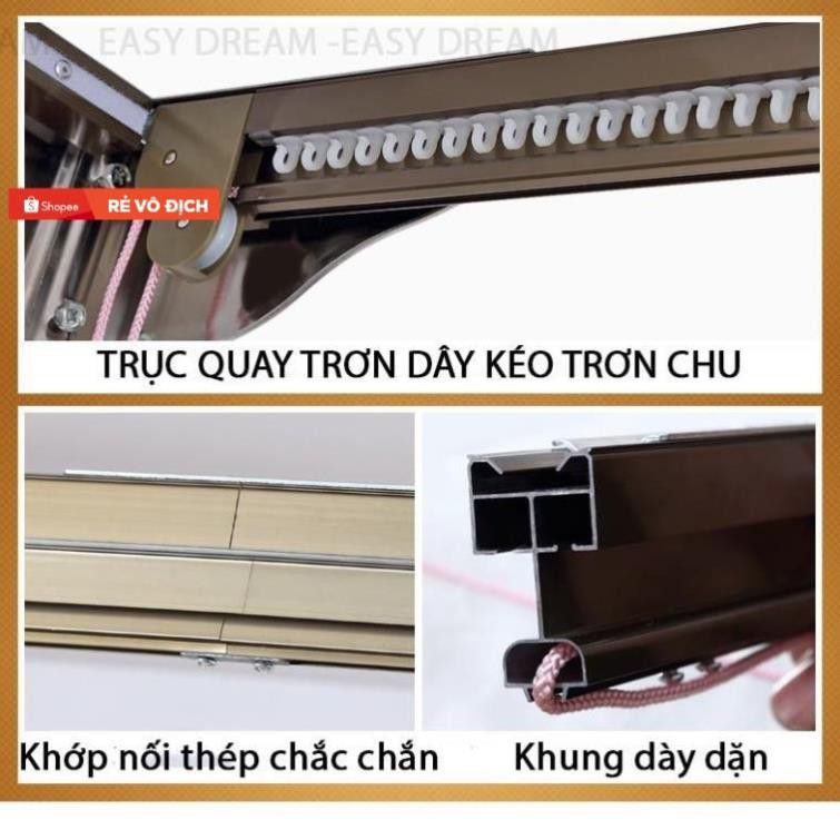 🧵 Chất liệu- Khung: Nhôm hợp kim sơn tĩnh điện, ray trượt ròng rọc