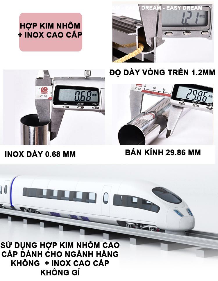 • Chất liệu khung:inox + hợp kim nhôm