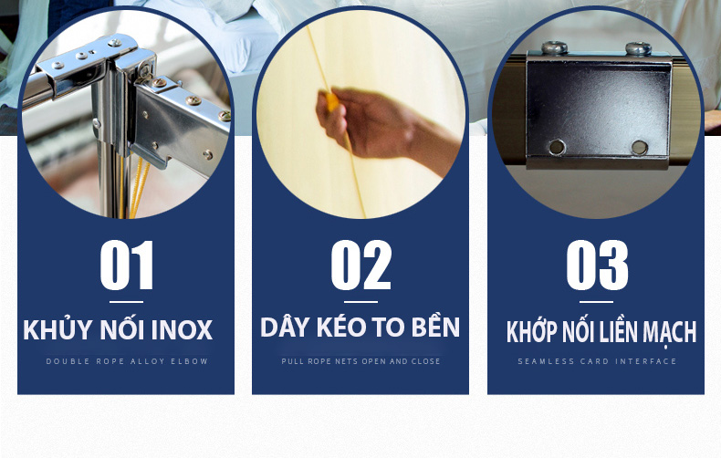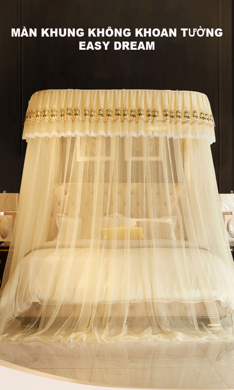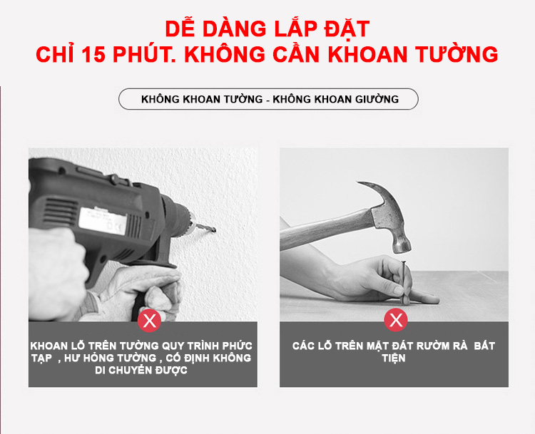- Không khoan tường , không khoan giường , lắp đặt dễ dàng nhanh chóng , chỉ gắn kết các khớp nối lại với nhau không cần máy móc bắt vít hay khoan . Qúy khách đều tự mình lắp cho mình chiếc màn khung không khoan tường EASY DREAM -đẹp sang trọng đẳng cấp nhất hiện nay .