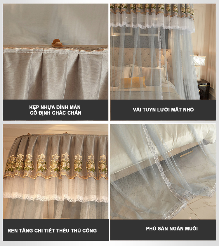 Tính thẩm mỹ. Với thiết kế được in, thuê những họa tiết hoa văn nổi bật, độc đáo cùng độ rủ của vải màn, màn ròng rọc mang đến vẻ đẹp độc đáo cho chiếc giường bạn, cho căn phòng ngủ của bạn.