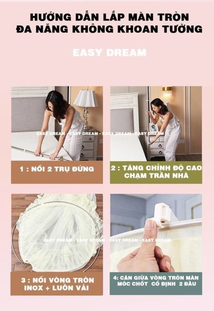Màn tròn công chúa cao cấp Không khoan tường EASY DREAM Đa Năng khung trụ inox cao cấp không gỉ chất vải tuyn xịn