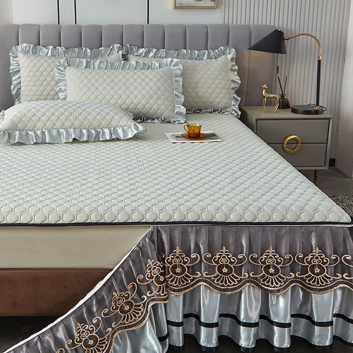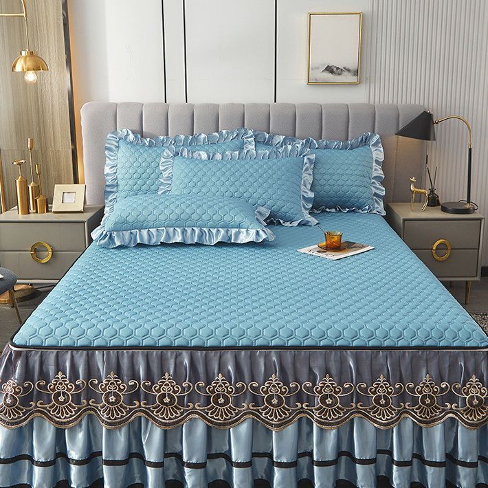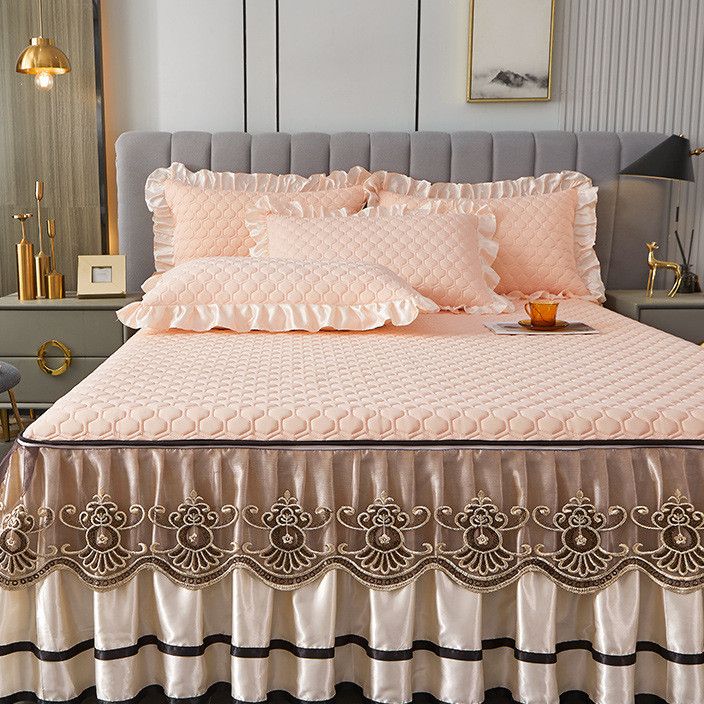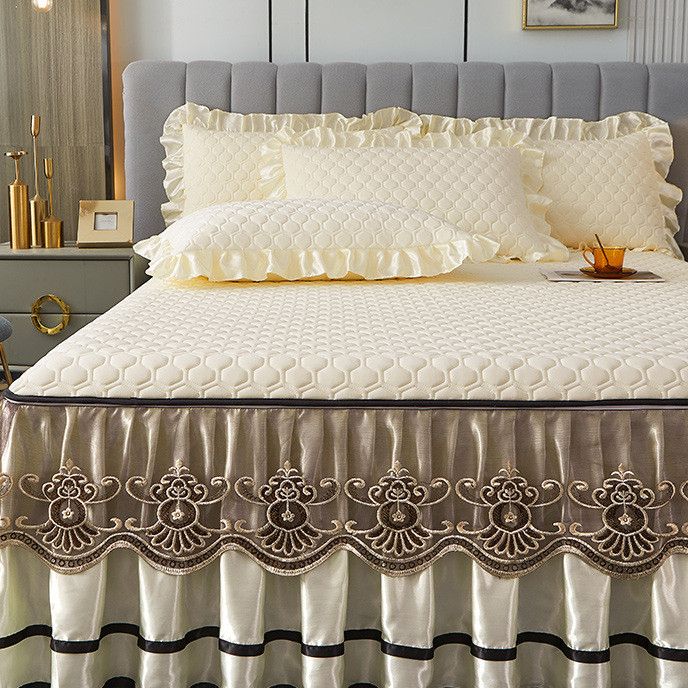 Váy Giường Cao Su Ren Phong Cách Châu Âu Màu Trơn Có Thể Tháo Rời Cao Cấp Mới, Bộ